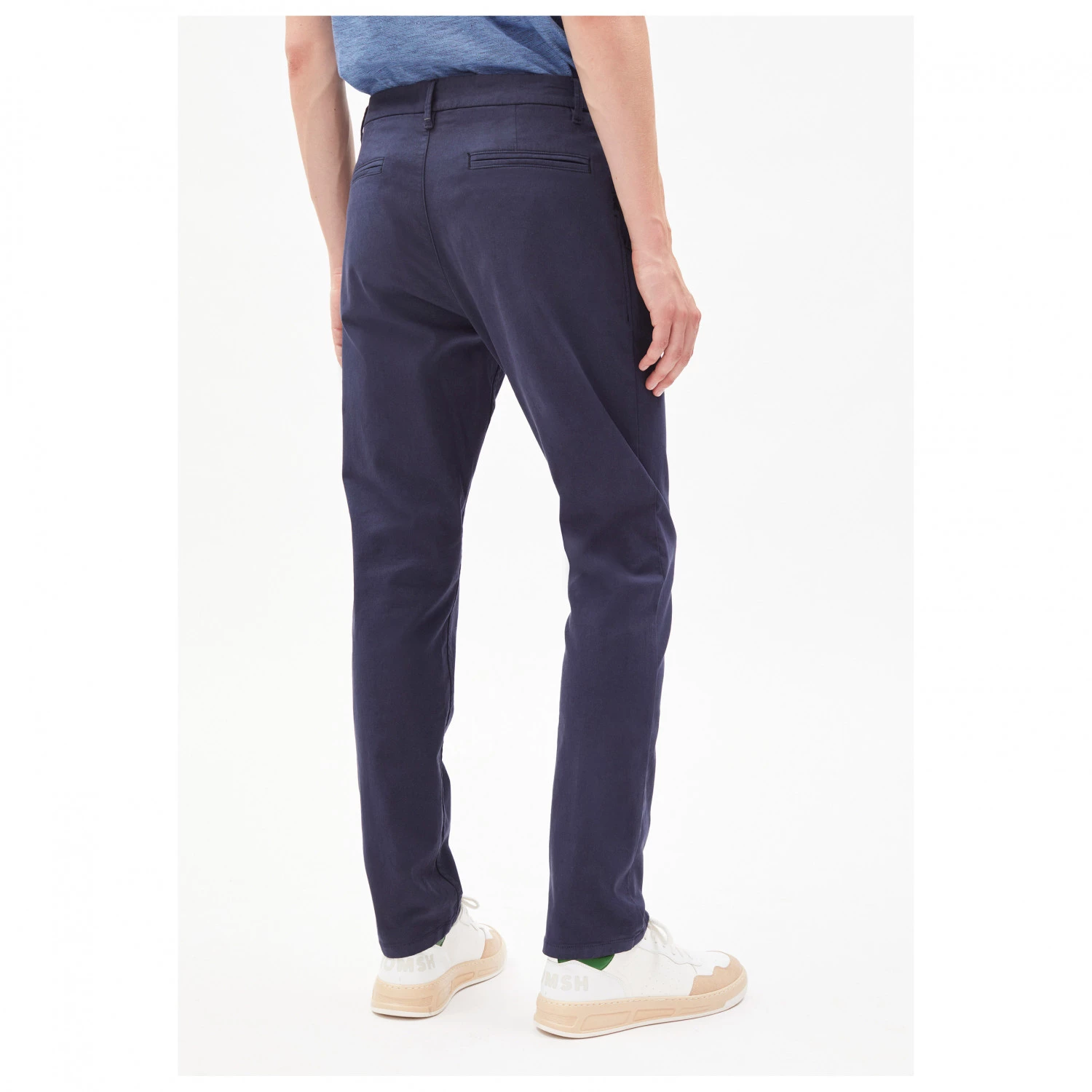 La fermeture est travaillée avec des boutons en chanvre, tandis que les passants à la taille permettent d’ajouter une ceinture. Grâce à la coupe chino décontractée et aux super matières, ce pantalon deviendra un véritable favori pour l’école, le bureau ou la vie de tous les jours.